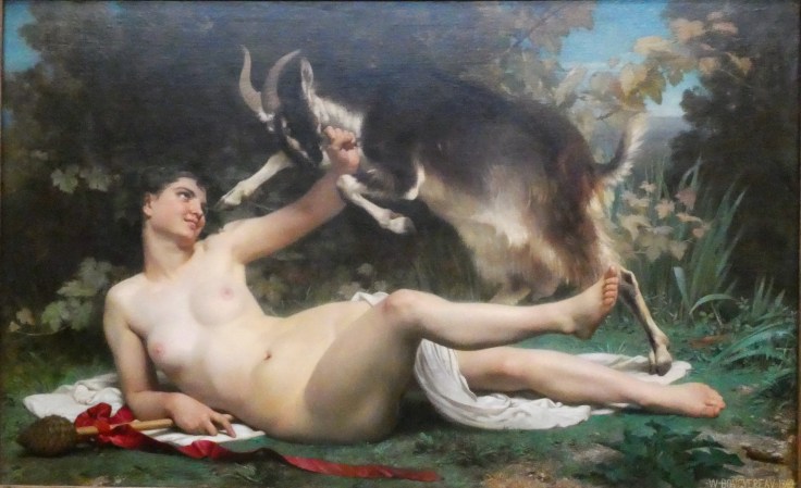 William Bouguereau. 1825-1905. Paris. Une Bacchante ou Bacchante lutinant une chèvre 1862.