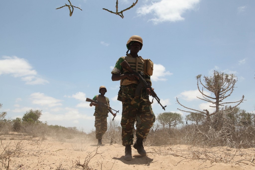 Soldats appartenant au contingent burundais de la Mission de l’Union africaine en Somalie défilent sur la ville de Ragaele, tenue par Al Shabab, dans la région de Hiraan en Somalie, le 30 septembre. Photo de l’AMISOM. Image originale du domaine public de Flickr